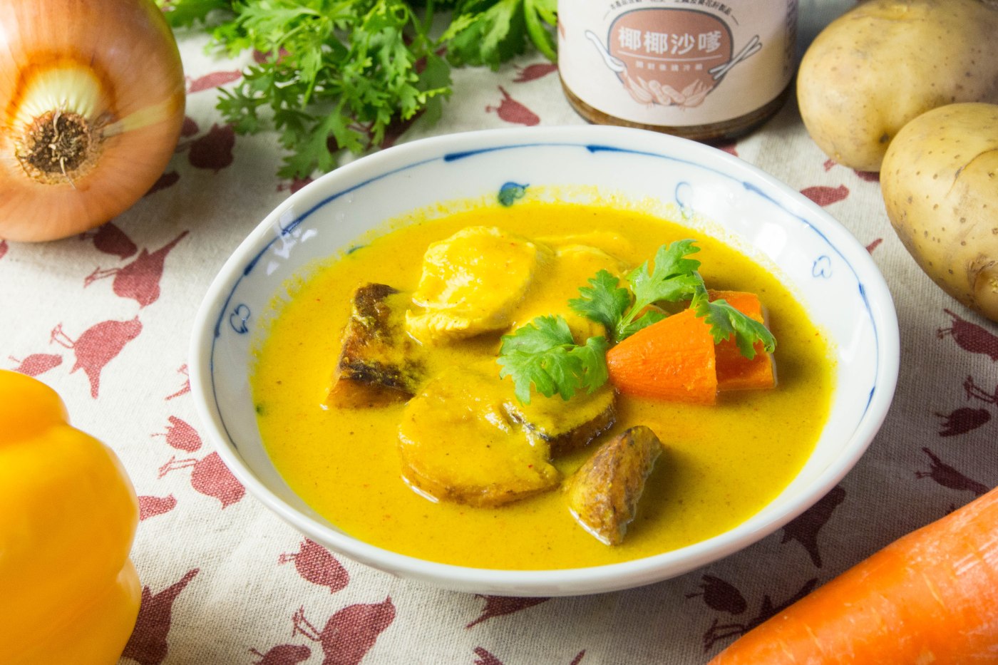 2.入鍋熬煮20分鐘,再倒入椰漿,製成南洋咖哩醬。
