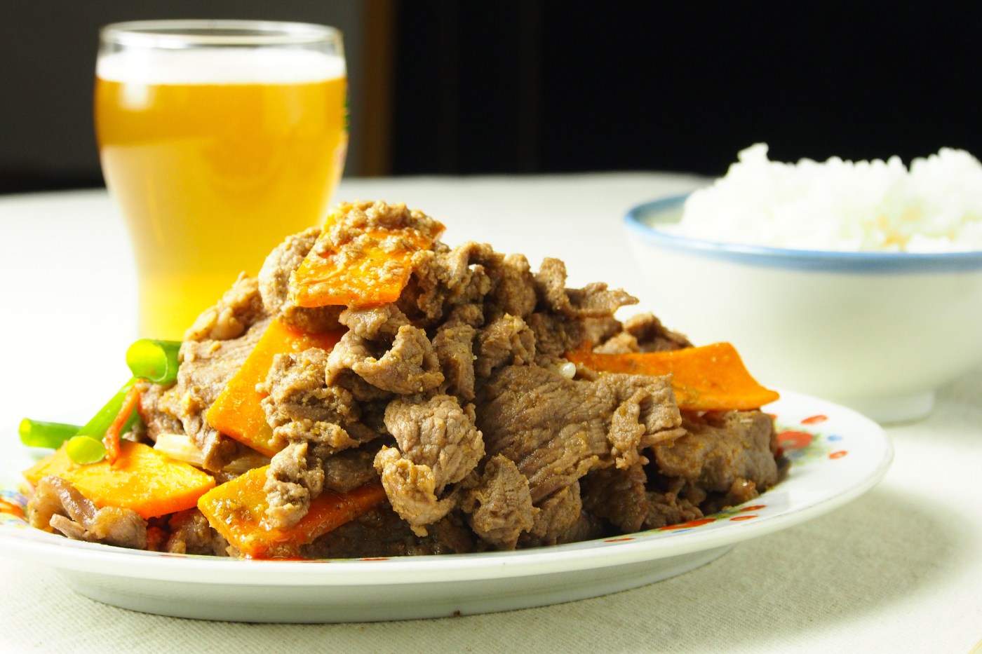 ✔材料:牛肉片200克、青蔥、紅蘿蔔或辣椒(配色用) 、 「台味沙茶醬」2大匙(1醬包)