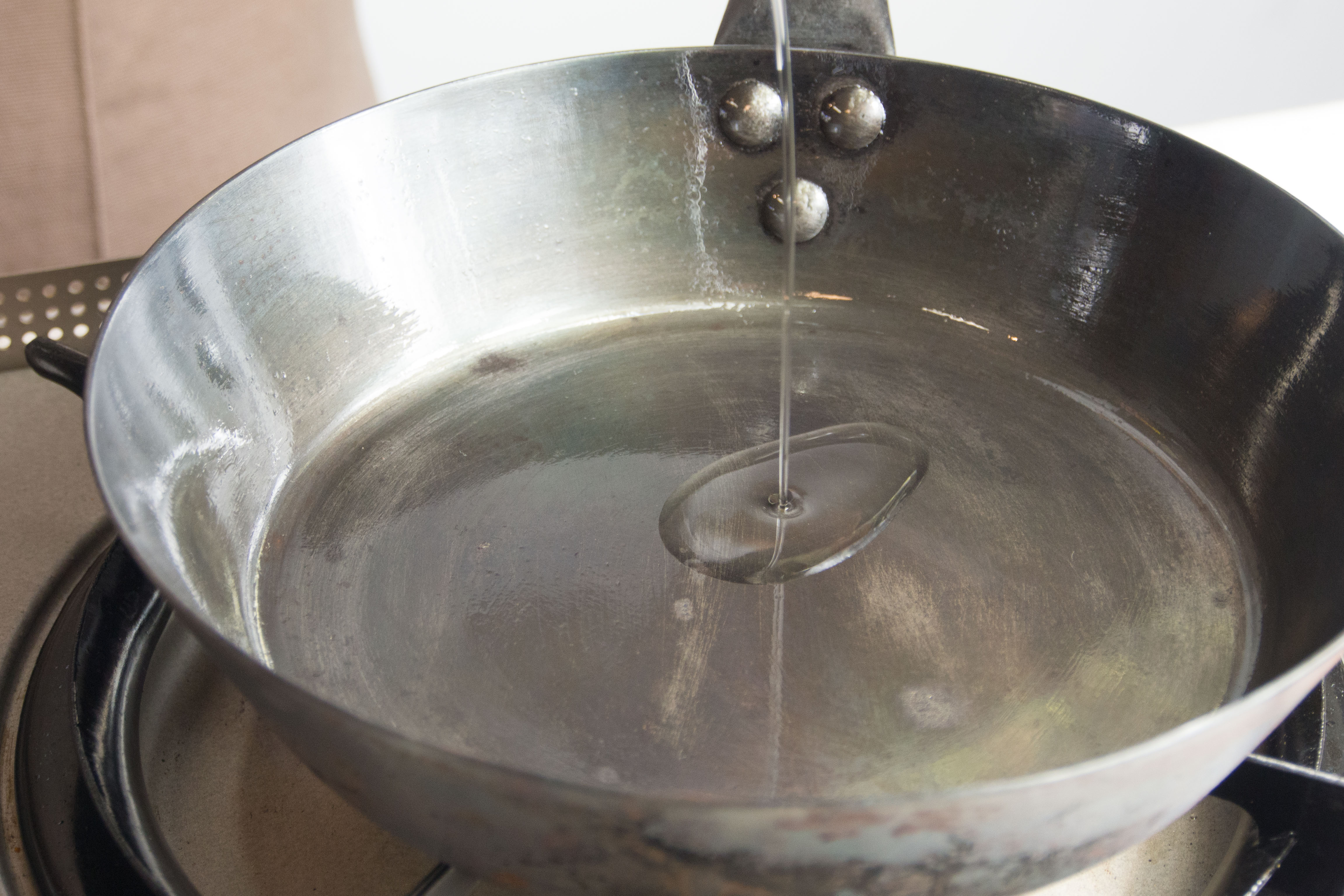 ※如果是使用鑄鐵鍋,煎之前要確保沒有殘留上一次的食物殘渣,熱鍋也要等到水氣完全蒸散,這樣才不容易沾鍋!