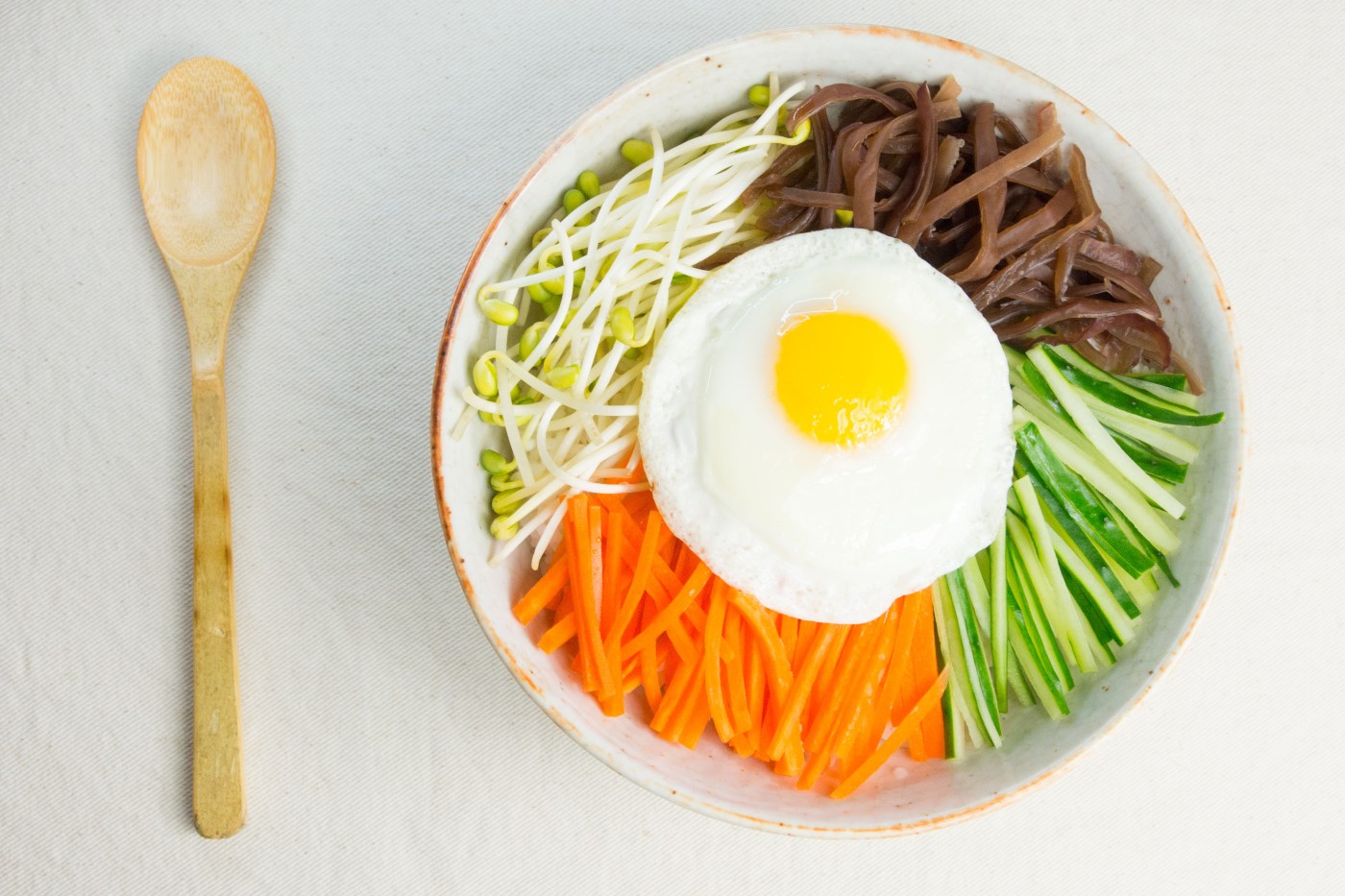 食材:黃豆芽 適量、黑木耳 1朵、紅蘿蔔 適量、小黃瓜 1/2根、雞蛋1顆、白飯1碗、茄茄辣醬2大匙(1醬包)