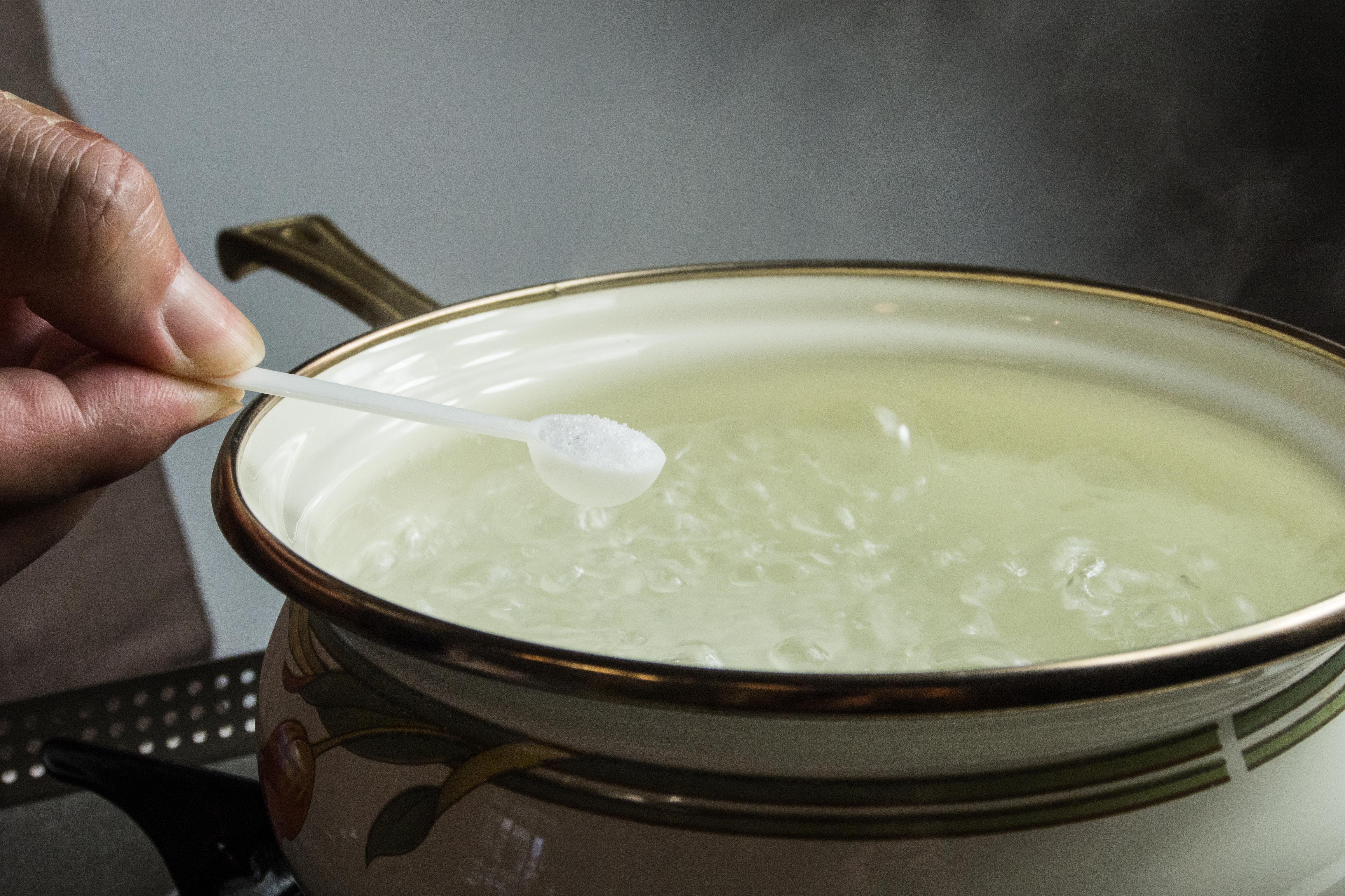 4.開小火,等凝結的蛋白邊緣開始起泡浮動時,熄火