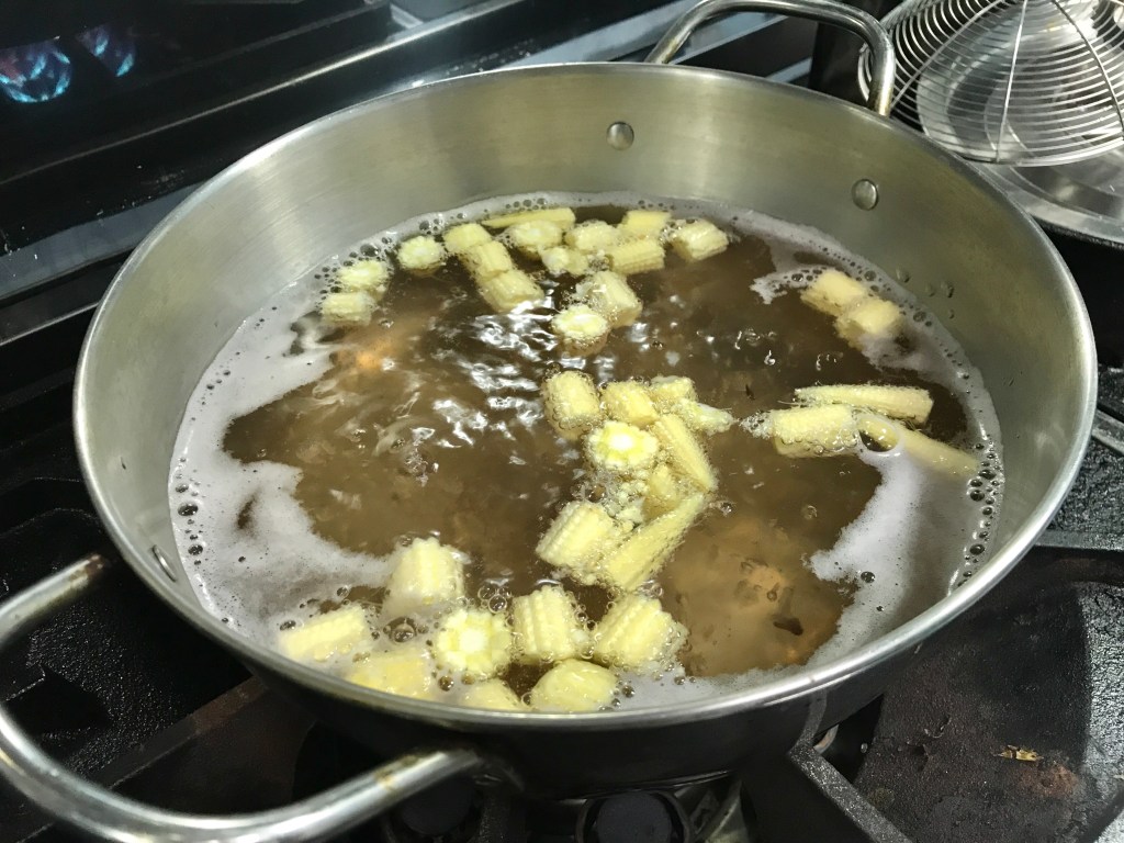 - 汆燙玉米筍約1分鐘 (可視玉米筍粗細調整時間)