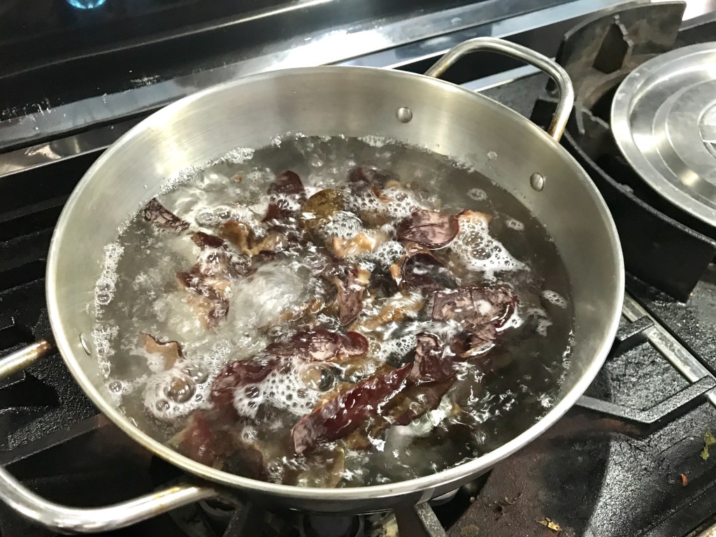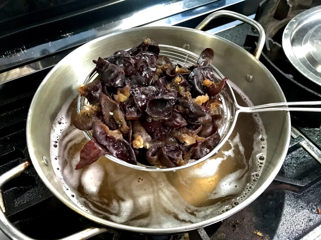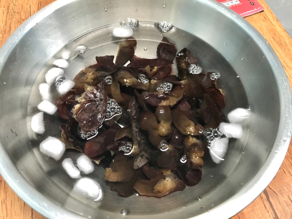 - 木耳汆燙30秒後,隨即撈起置入冰水中降溫