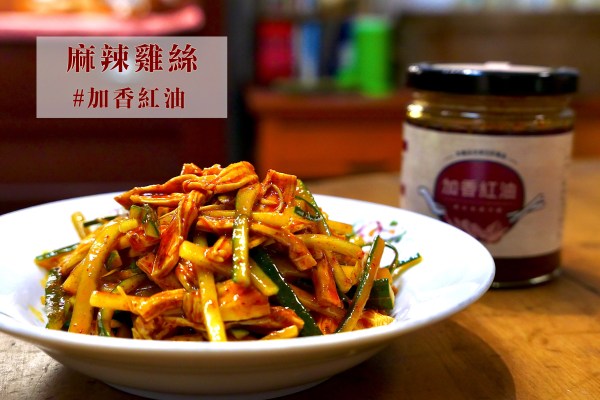 夏天最適合低開火的涼拌菜,使用「加香紅油」隨身醬包,加上舒肥雞胸肉。只要輕輕撕開一包,麻、辣、鹹、香融合其中,在家不用大動作開火調味,也能簡單做出川味料理「麻辣雞絲」。